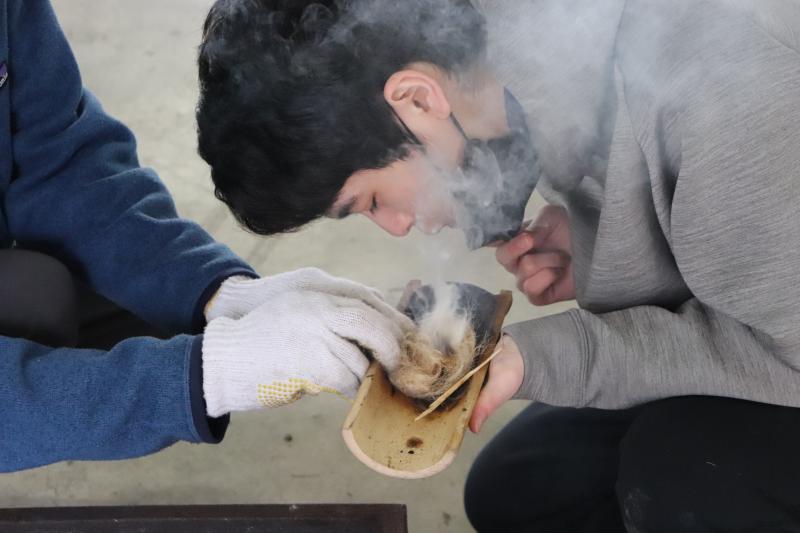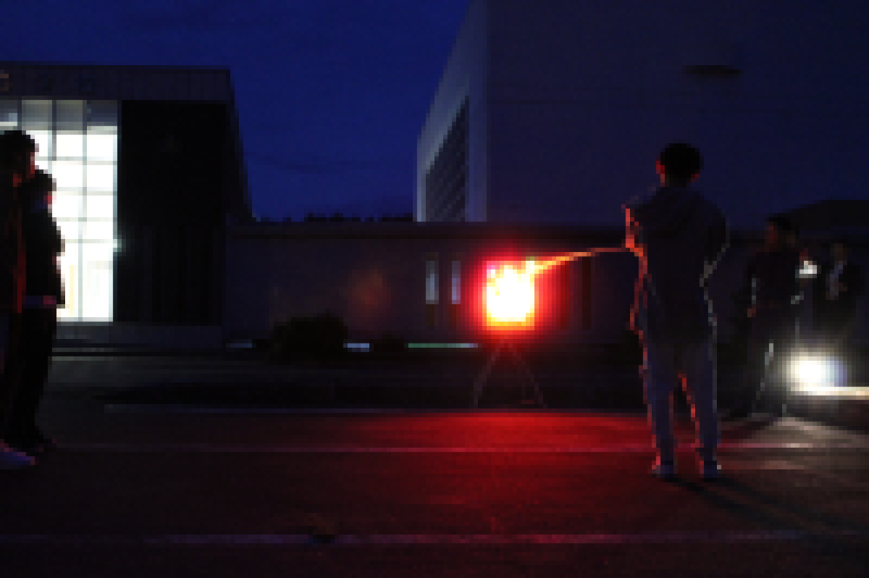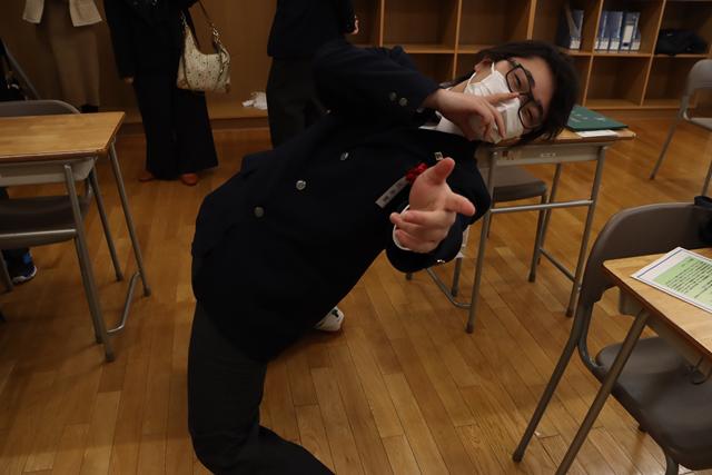 避難訓練終了後、日高西部消防組合職員のご協力により火災における煙の疑似体験を通して、火災時に必要な行動を実践しました。
