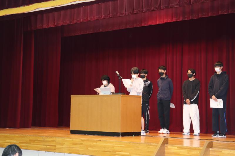 生徒会長、副会長、議長、会計長の立候補者と責任者がそれぞれ日高高校への熱い思いを発表していました。