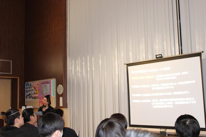 生徒たちはこれまでの経験や学びを振り返りながら、今後の進路についての考えや思いを一人ひとりがしっかりと発表していました。